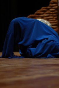 Notes on the scene from director: Yeah, okay, no one wears a royal blue burqa. But sometimes for stage effect, one has to let his/her artistic juices flow, and look how the final product turned out. The burqa gleamed on stage, everyone noticed it. I do not think, red, black, white or even light blue would have achieved this effect.