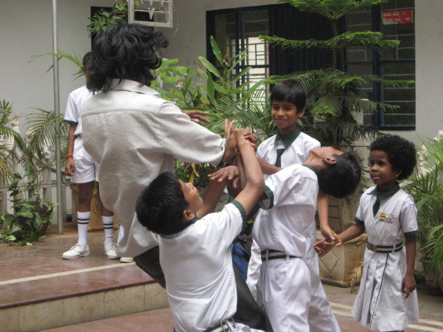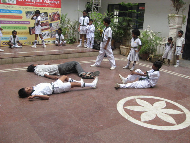 The growing rage at traffic signals, and ruthless driving was targeted during this small project initiated and performed by school children of SVV. The workshop with children culminated in a small skit which aimed at educating children about what an individual needs to do when he comes across an accident on the streets. During crisis situations they should be near their parents, and not wander. Parents should be alert about their children. We also addressed speeding, drunken driving and being careful about the physically impaired who use the streets too in helping them commute safely. Citizens should not act ignorant and avoid the responsibilities which come with being a good citizen. We should help each other when a situation arises, take charge and move forward to solve situations.. and of course to take care that immediate needs of the accident are met.