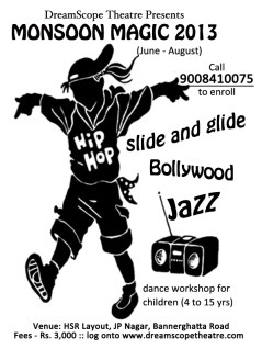 DreamScope Theatre is organizing Dance workshops at our various centers, starting June, 2013. It is a three month workshop on Bollywood, Jazz and Hip Hop, concentrating on the latest techniques introduced in the dance forms. Monsoon Magic will be facilitated by our main dance instructor and actor Tushar Patil. The workshop is open for enrollment for children between the age group of 4 years to 15 years of age. The workshop will end with a small performance on stage by the children.